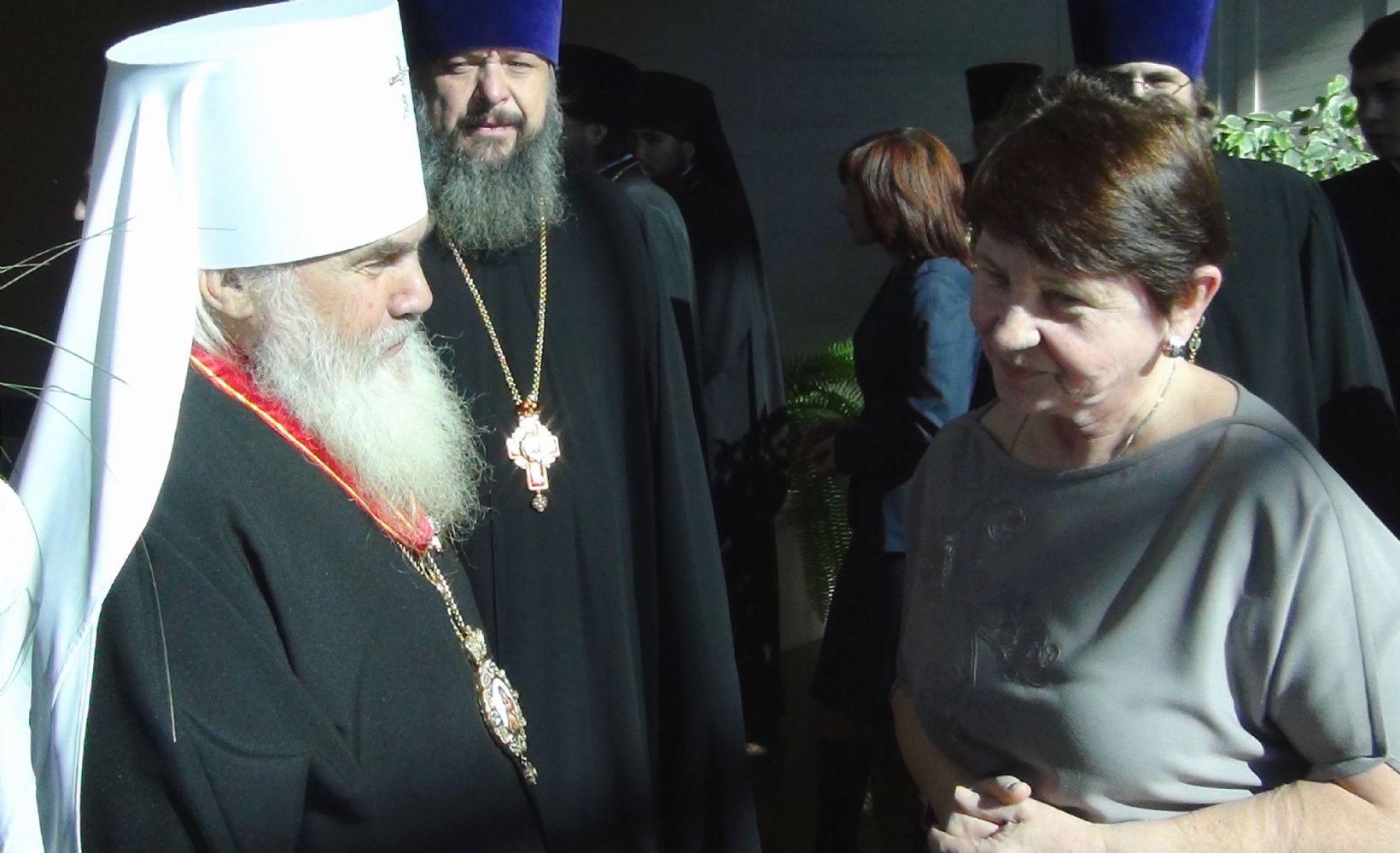 От лица монашества юбиляра поздравила настоятельница Марфо-Мариинского женского монастыря игумения Мария (Пономарева), специально написавшая к дню рождения Высокопреосвященнейшего владыки стихотворение.