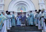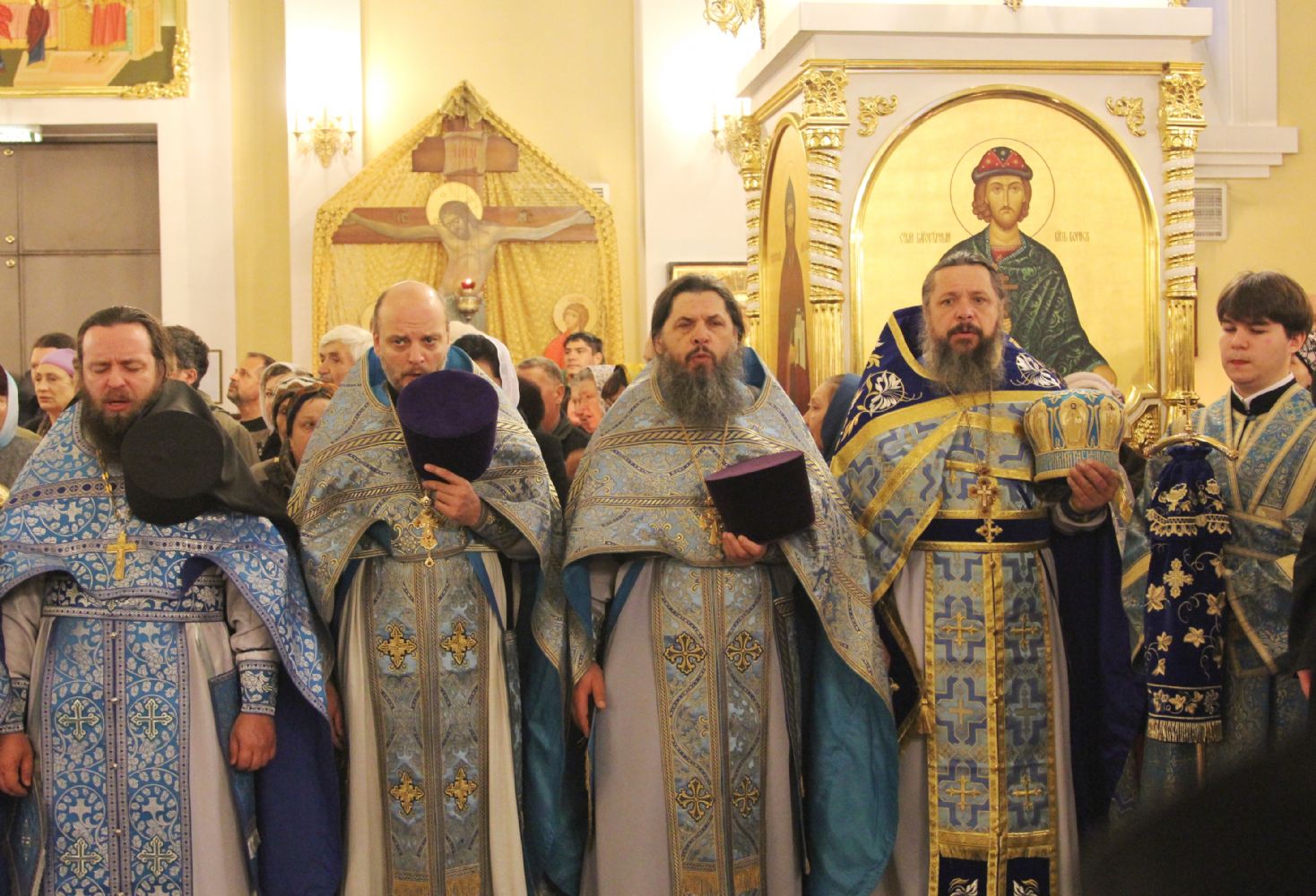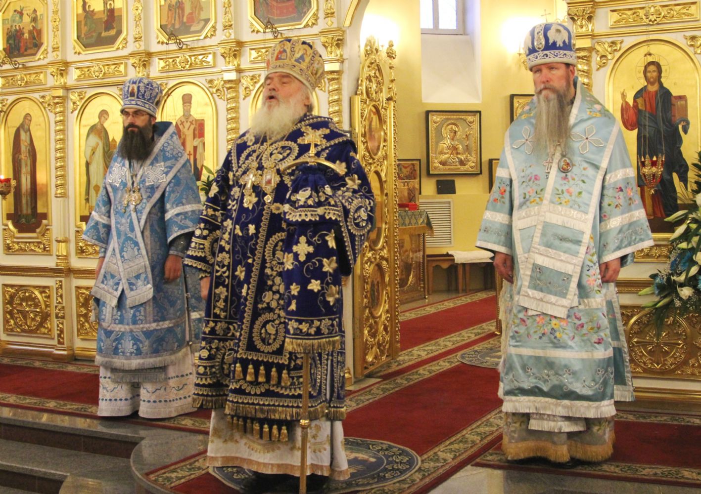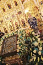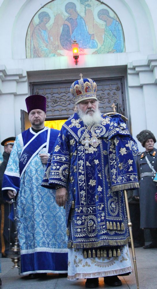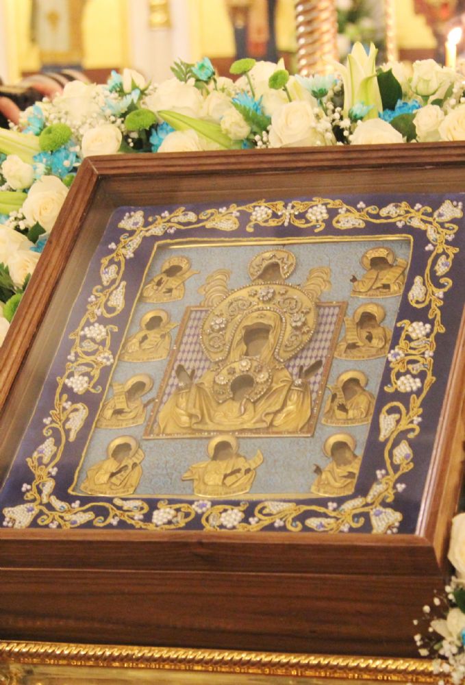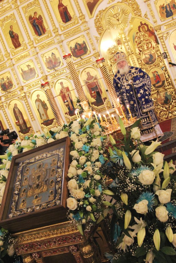 Богослужение началось с торжественного принесения в Покровский кафедральный собор древнего образа – Курской-Коренной иконы Божией Матери «Знамение». Перед образом митрополит Владивостокский и Приморский Вениамин возглавил соборный молебен, а затем состоялось служение Божественной литургии.