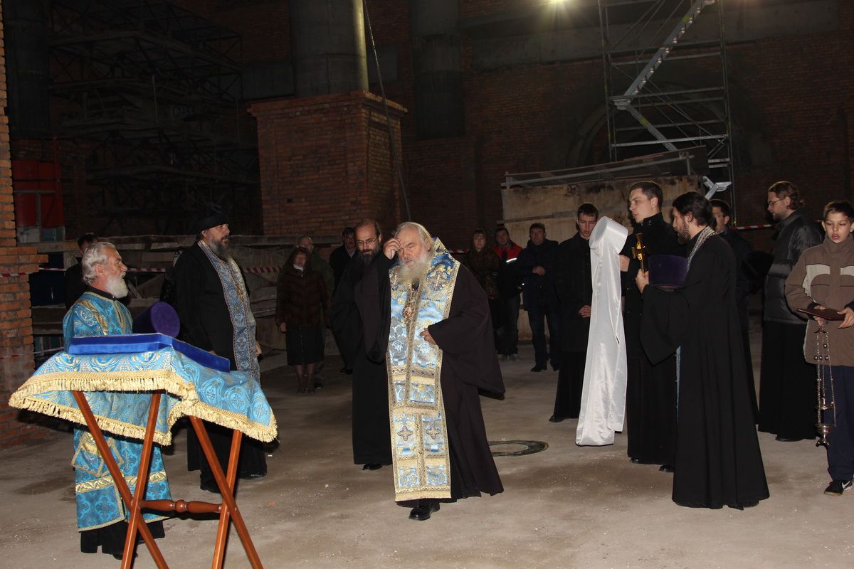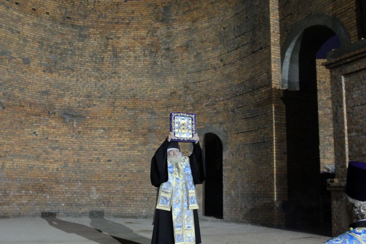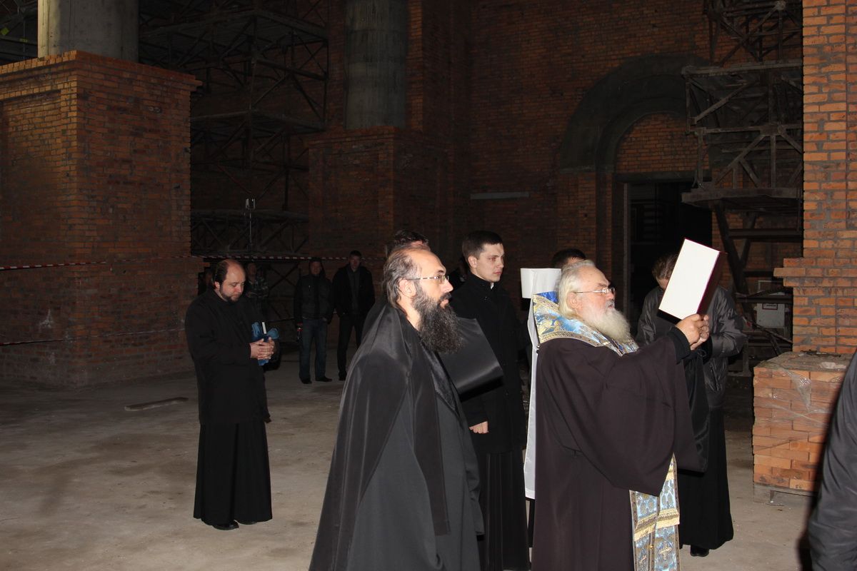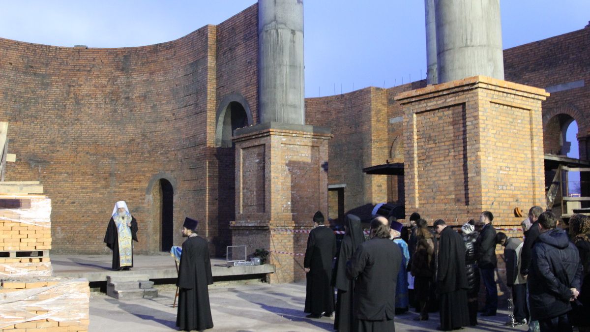 Первое богослужение состоялось в строящемся Преображенском соборе