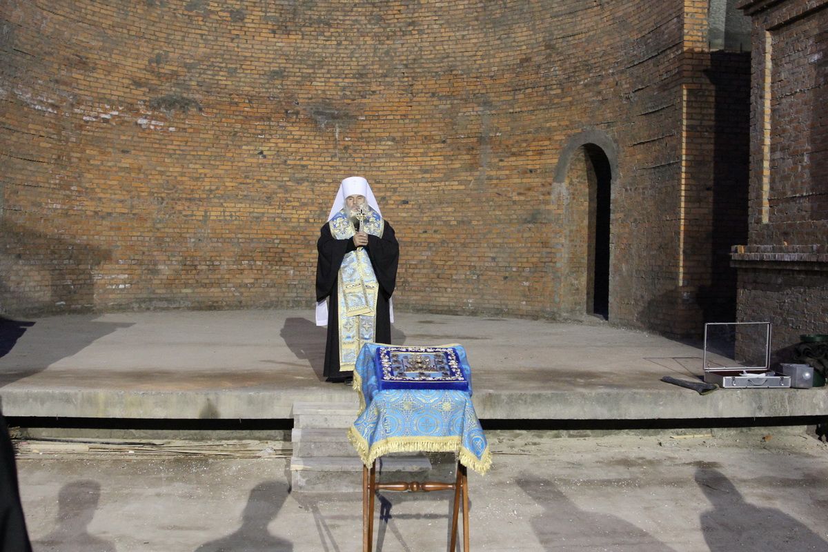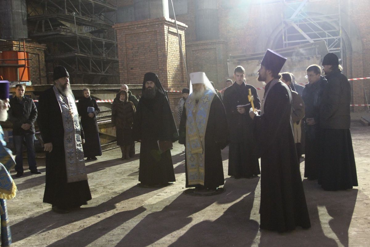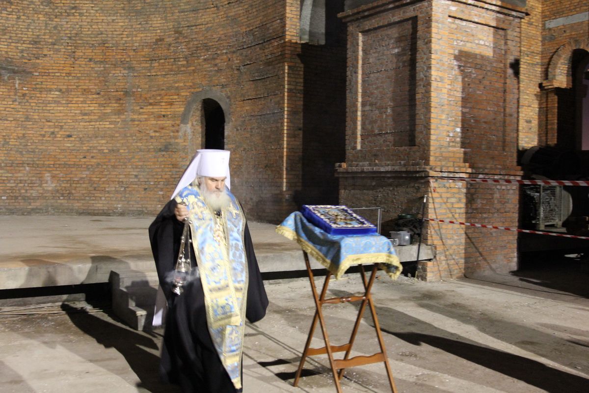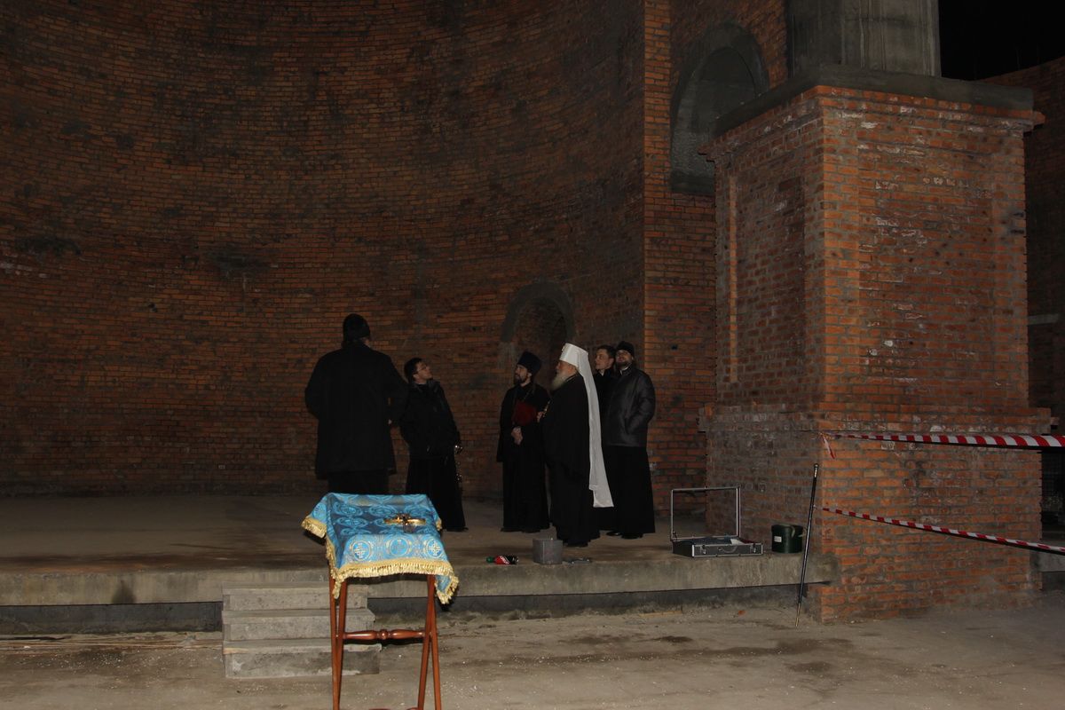 Первое богослужение состоялось в строящемся Преображенском соборе