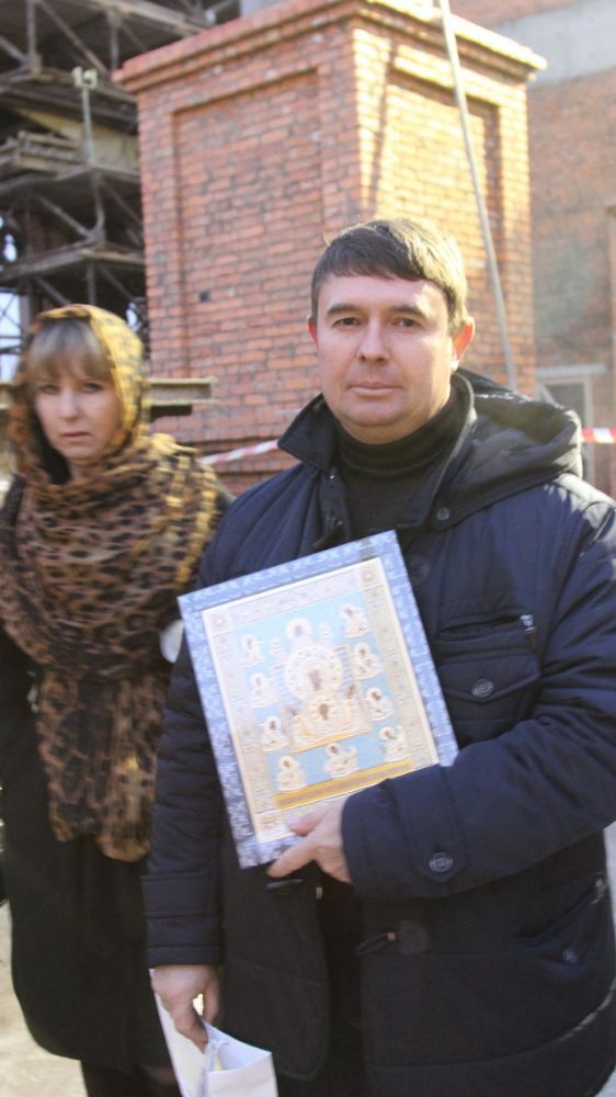 По окончании молебна митрополит Вениамин поблагодарил строителей в лице руководителя строительства собора, заместителя начальника управления № 712 Спецстроя России Виктора Ивановича Копысова и вручил ему список иконы Курской-Коренной Божией Матери «Знамение», освященный на Чудотворной древней святыне.