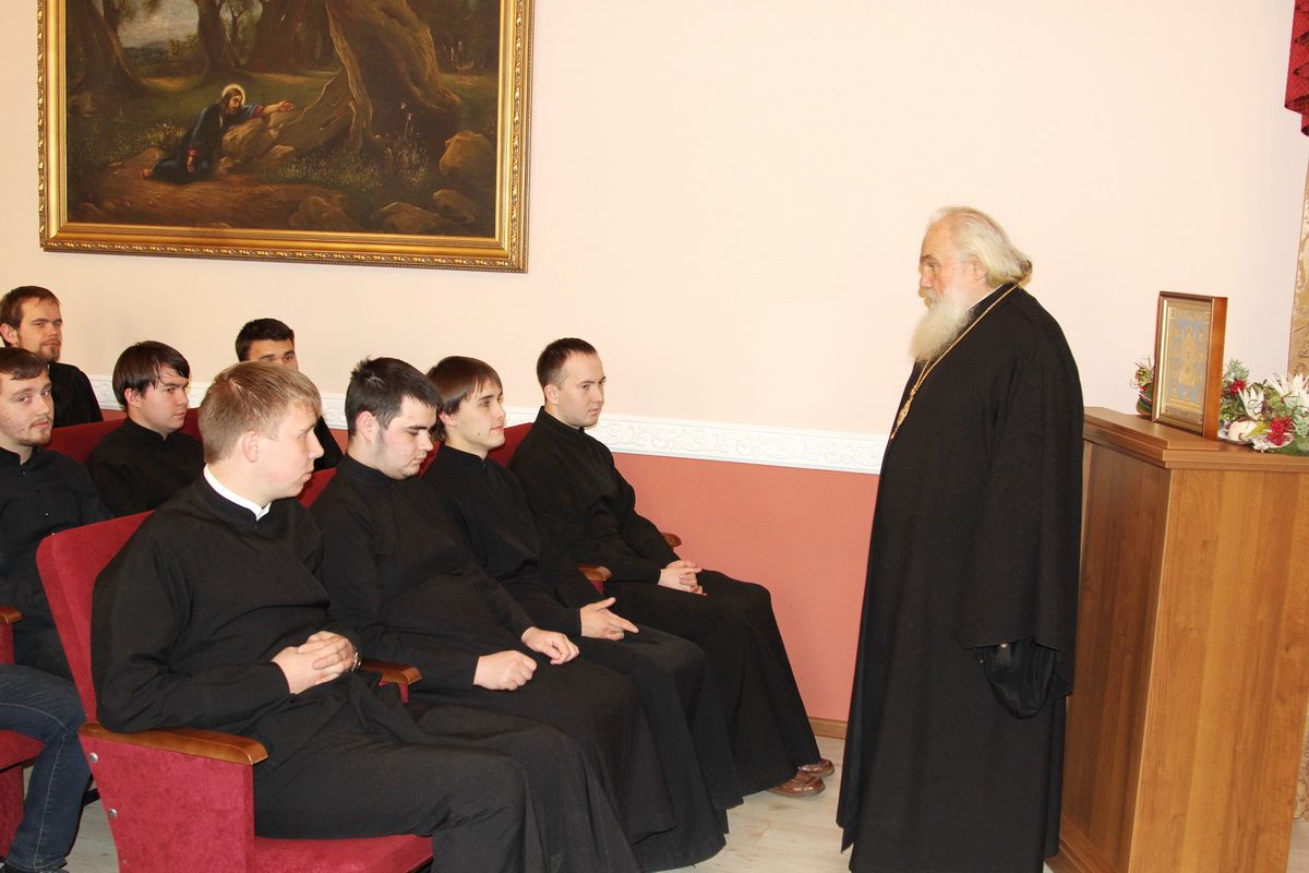 Гостей представил ректор Владивостокского Духовного училища митрополит Владивостокский и Приморский Вениамин. Также во встрече принимал участие викарий Владивостокской епархии епископ Уссурийский Иннокентий.