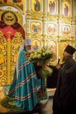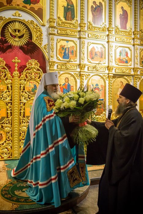 Епископ Уссурийский Иннокентий тепло поздравил владыку Вениамина с праздником и пожелал дальнейших успехов в архиерейском служении. От лица духовенства Владивостока Высокопреосвященнейшего владыку поздравил ключарь Покровского кафедрального собора протоиерей Александр Талько.