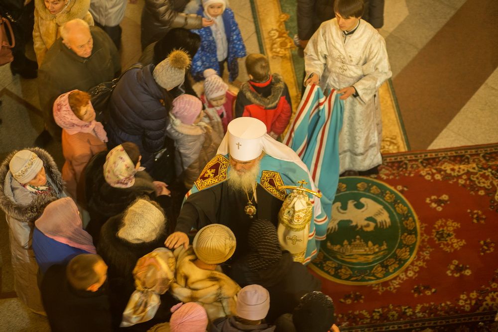 После чтения Евангелия Высокопреосвященнейший владыка Вениамин обратился к пастве с проповедью, в которой отметил духовное значение Рождества Христова: