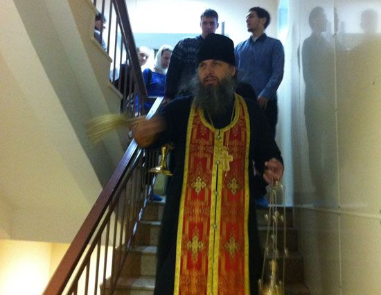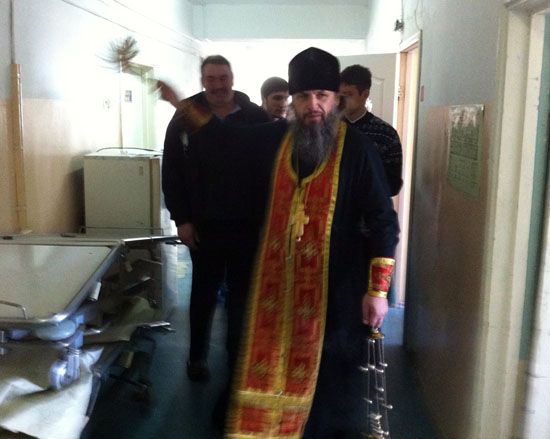 Священнослужители окропили святой водой палаты, реанимацию, ординаторские, сестринские. Обошли все 9 этажей больницы. Раздавали крещенскую воду, сладости, а также листовки, рассказывающие о святой воде.