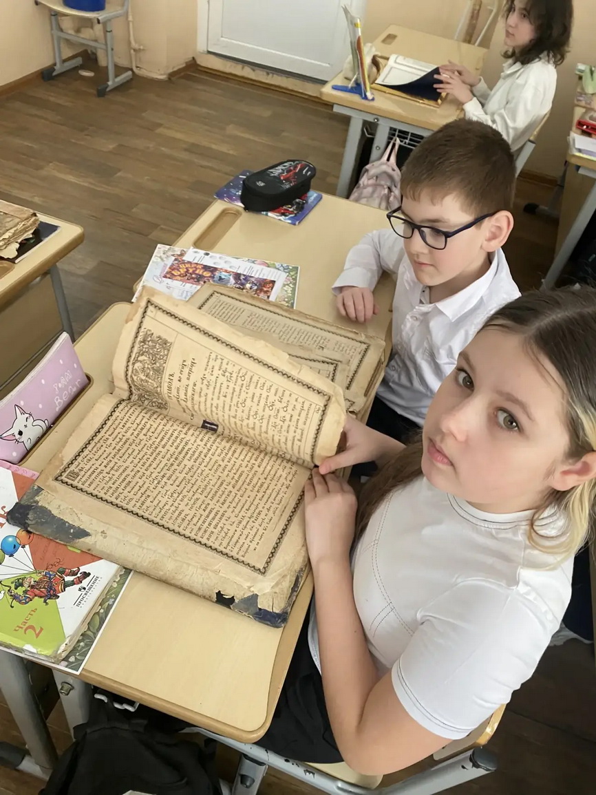 Особенным моментом встречи стала демонстрация старинных книг, написанных на церковнославянском языке. Дети с интересом рассматривали уникальные экземпляры, узнавая больше о культуре и традициях прошлого.