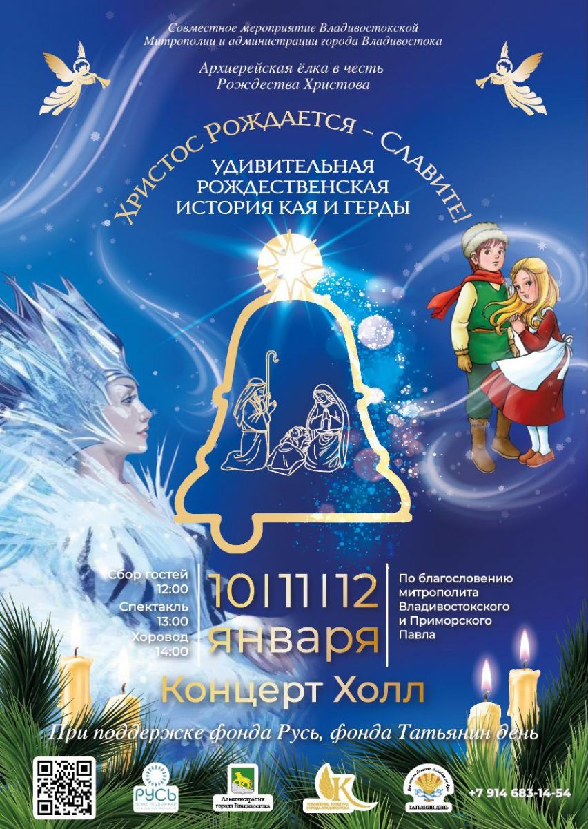 📅 10, 11, 12 января в Концерт Холле пройдет митрополичья ёлка под названием "Удивительная Рождественская история Кая и Герды". Начало в 12.00.