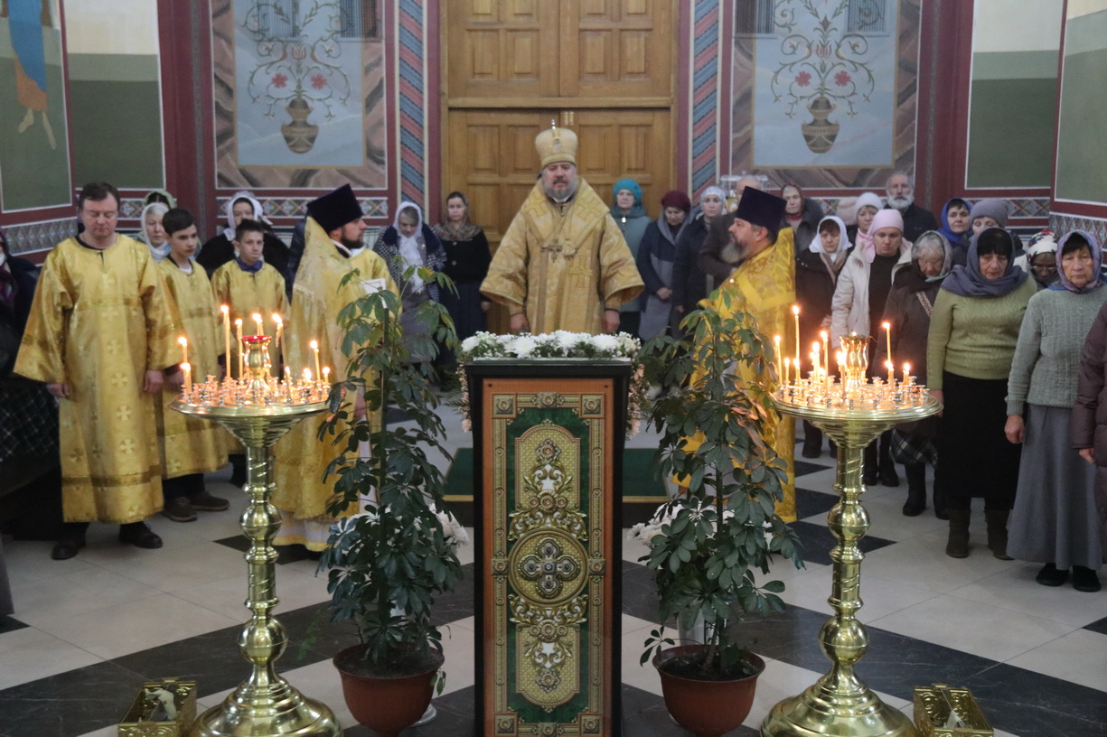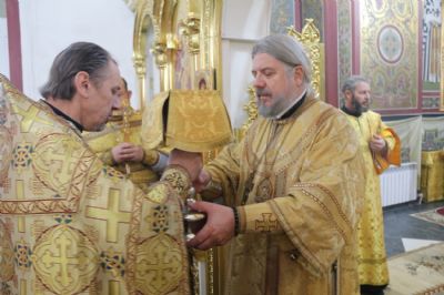 По заамвонной молитве епископ Николай, в сослужении духовенства, возглавил праздничный молебен и славление святителю Спиридону.