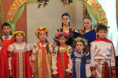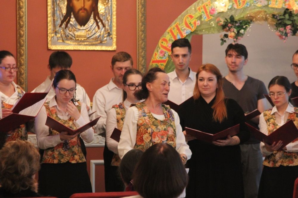 Вечер продолжился концертными номерами. Их представили ученики православной гимназии г. Владивостока, вокальная группа воскресной школы «Буквица» храма в честь Порт-Артурской иконы Божией Матери г. Владивостока, хор Покровского кафедрального собора под руководством регента Людмилы Макаренко. Елена и Роман Косминовы из воскресной школы храма Богоявления г. Артема предложили литературную композицию о трудах святых Кирилла и Мефодия.