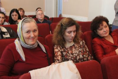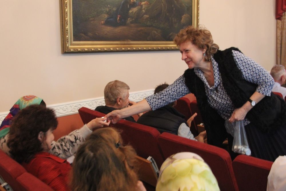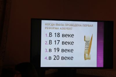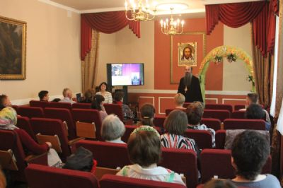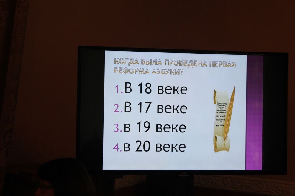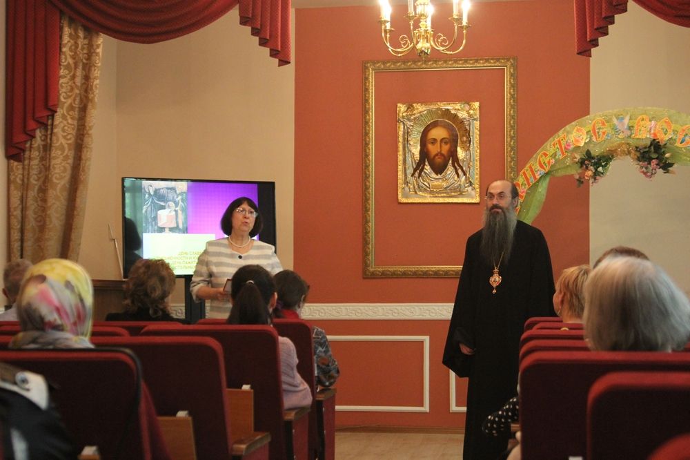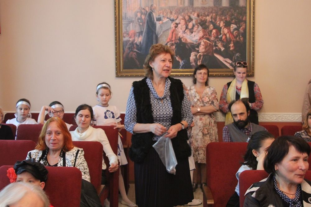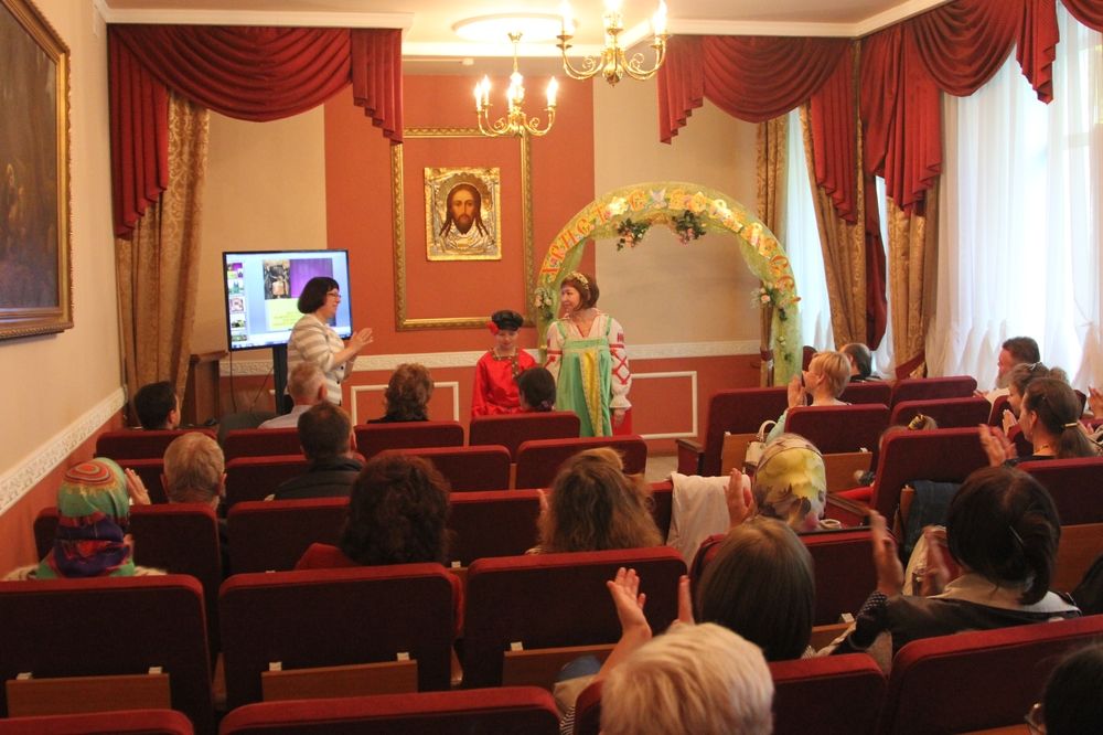 Вела вечер методист отдела религиозного образования Е. Д. Тимошенко, которая провела для зрителей познавательную викторину, посвященную славянским учителям и русскому языку.