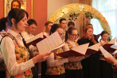 В канун праздника святых равноапостольных Кирилла и Мефодия в актовом зале духовного центра прошел торжественный вечер. Он начался с приветственного выступления директора центра епископа Уссурийского Иннокентия, в котором владыка обратился к значению Дня славянской письменности и культуры. А затем он по благословению митрополита Владивостокского и Приморского Владимира вручил архиерейские грамоты нескольким катехизаторам, усердно просвещающим христианскими наставлениями прихожан в Покровском, Никольском кафедральном и Успенском храмах г. Владивостока. Такая традиция — отмечать труды приходских миссионеров к дню Кирилла и Мефодия, уже сложилась в нашей епархии.