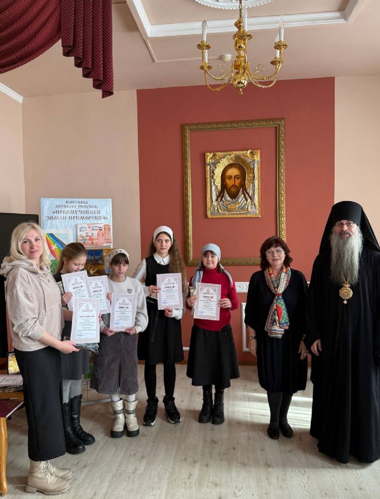 Также в ходе проведения конкурса прошли выставки детского рисунка «Святые новомученики земли Приморской» во Владивостокском епархиальном управлении и в МБОУ СОШ № 25 г. Владивостока.