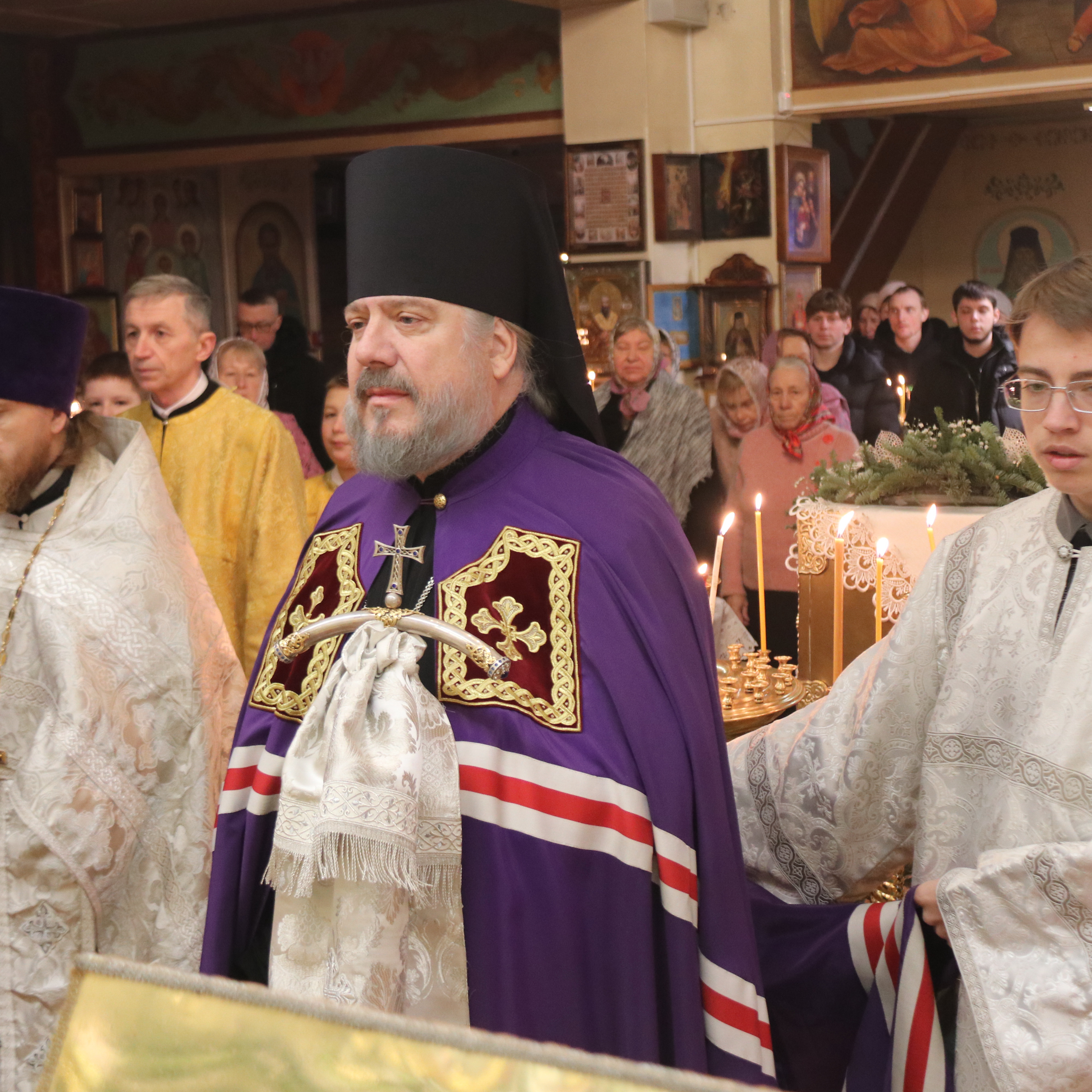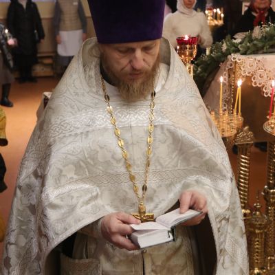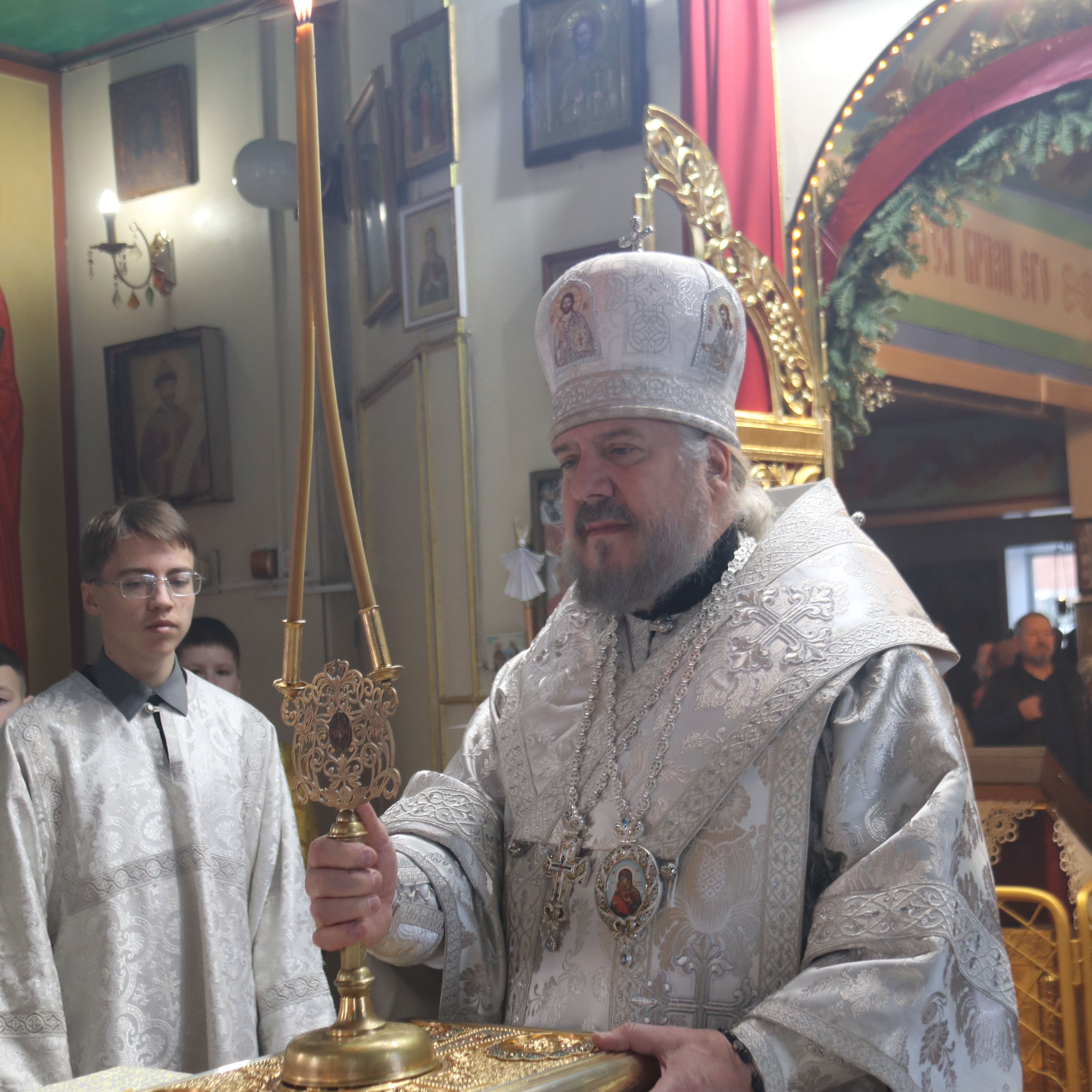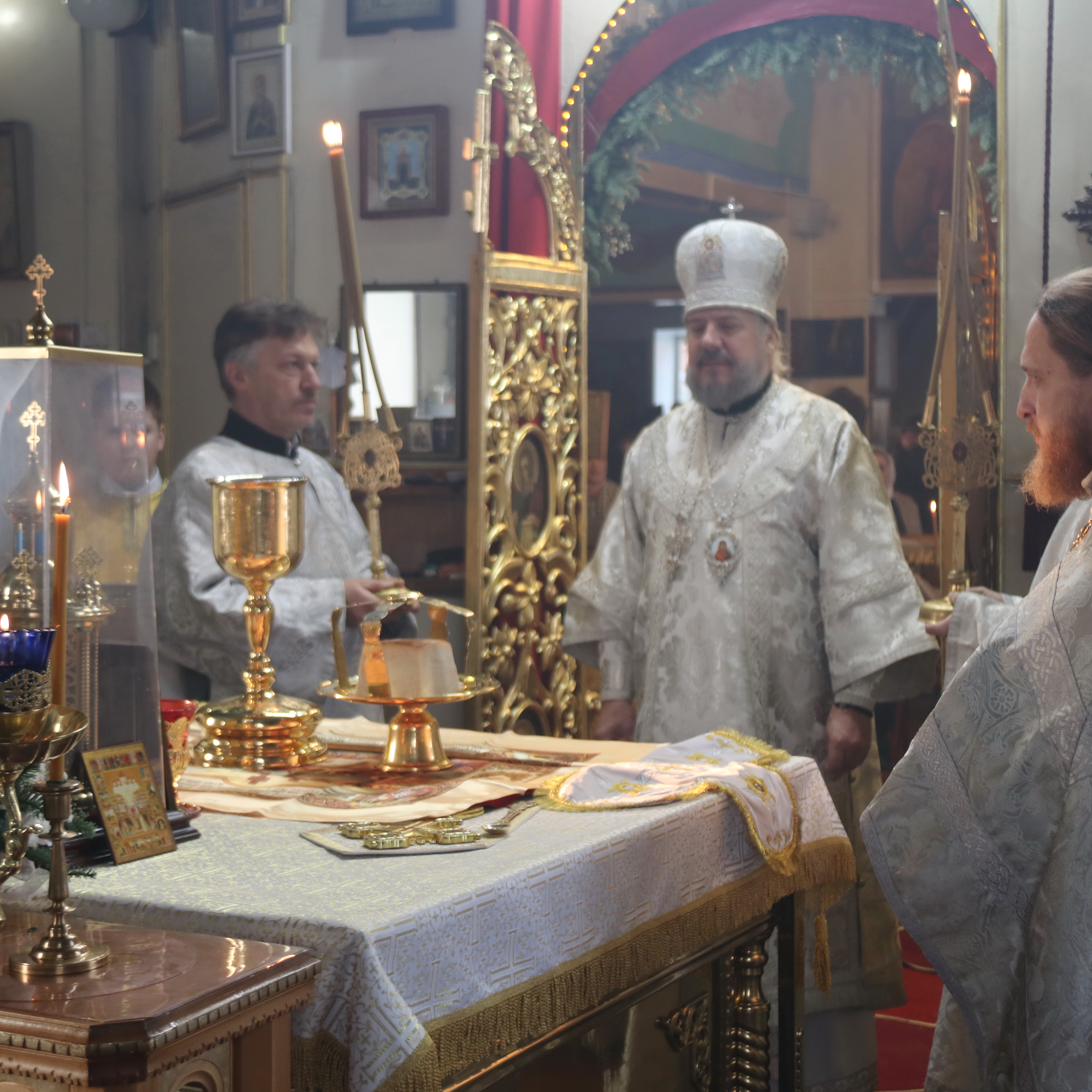 Его Преосвященству сослужили; иерей Андрей Калнин, благочиный Казанскгого Кафедрального собора и иерей Иоанн Капитанюк, настоятель Свято-Рождественского храма г. Находки.