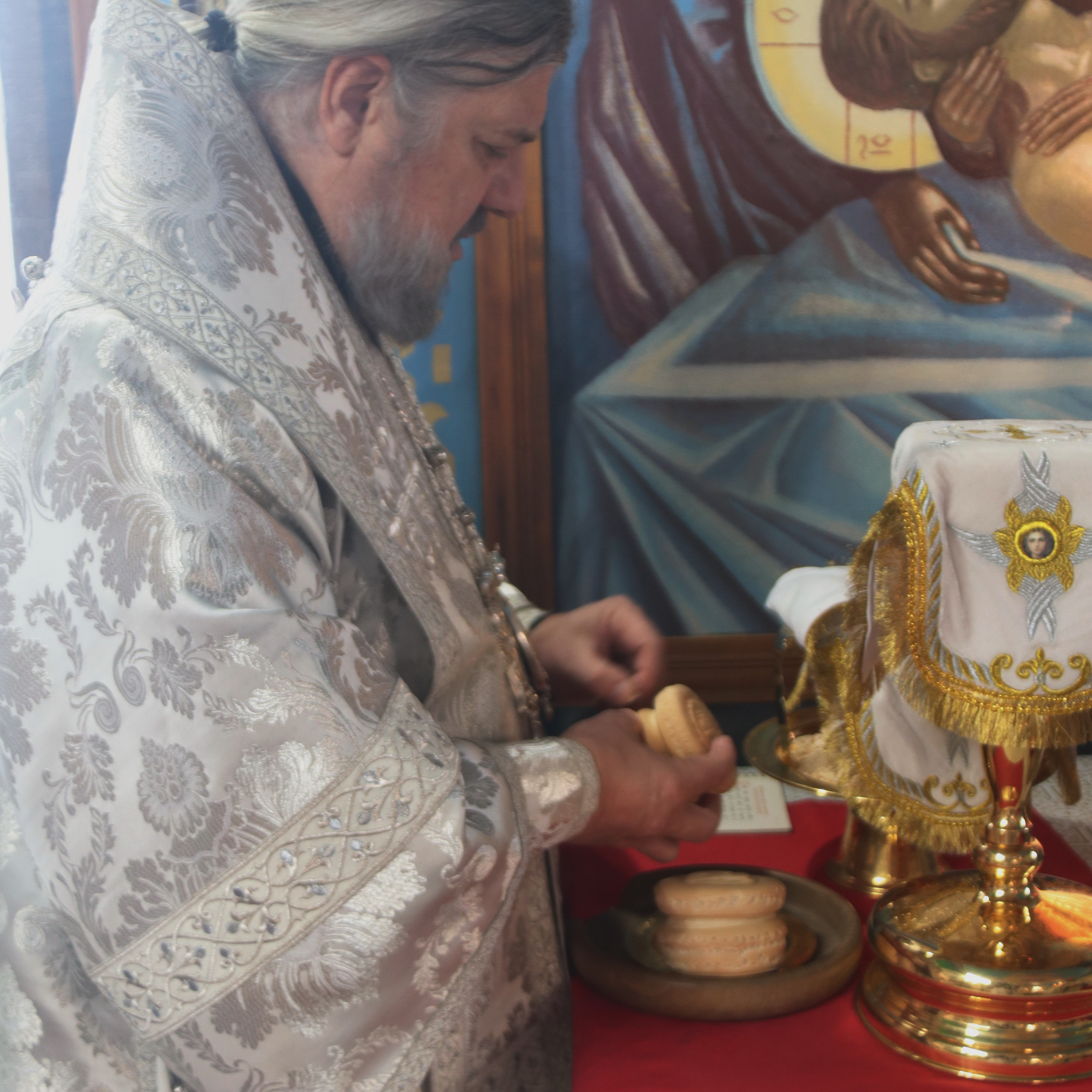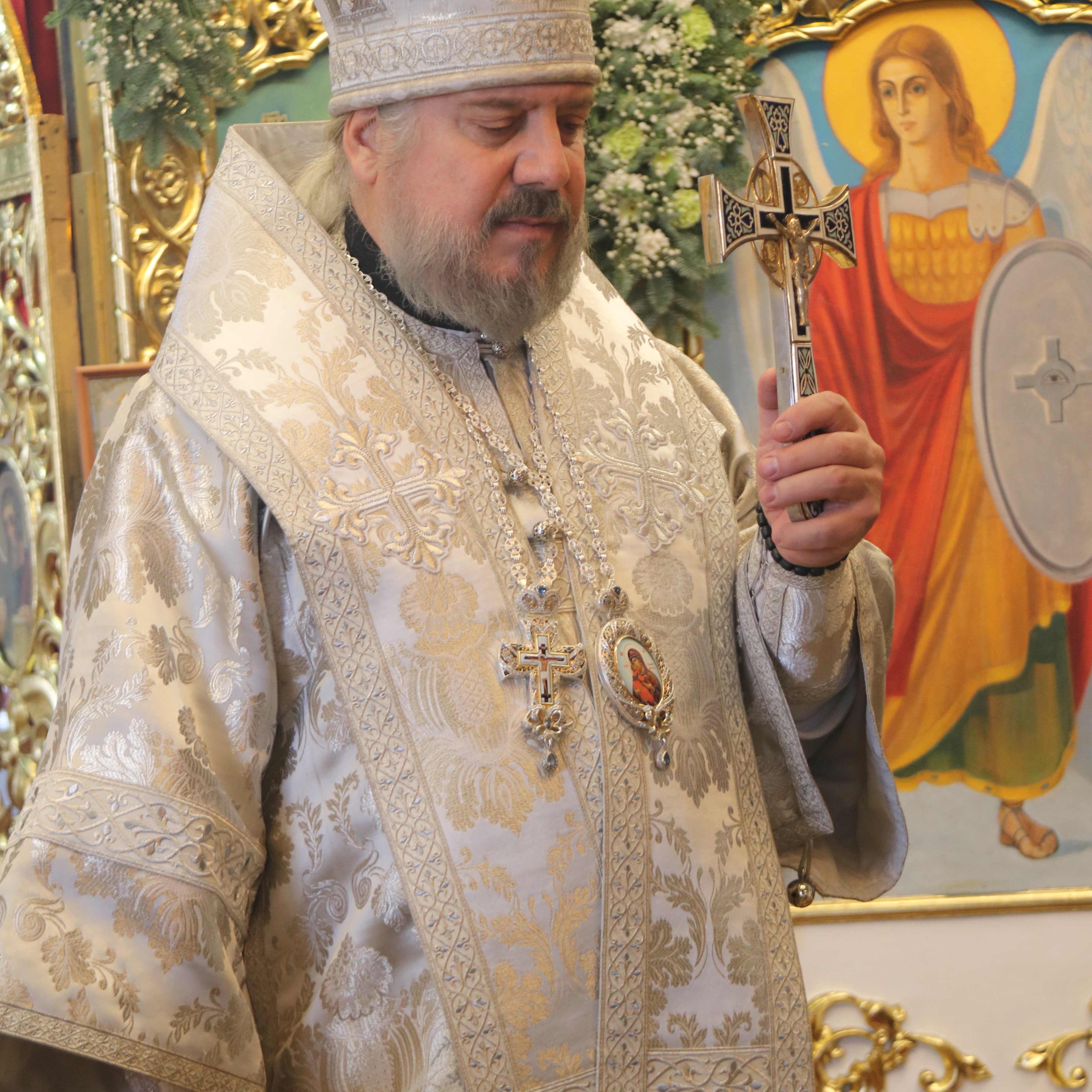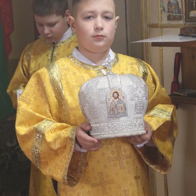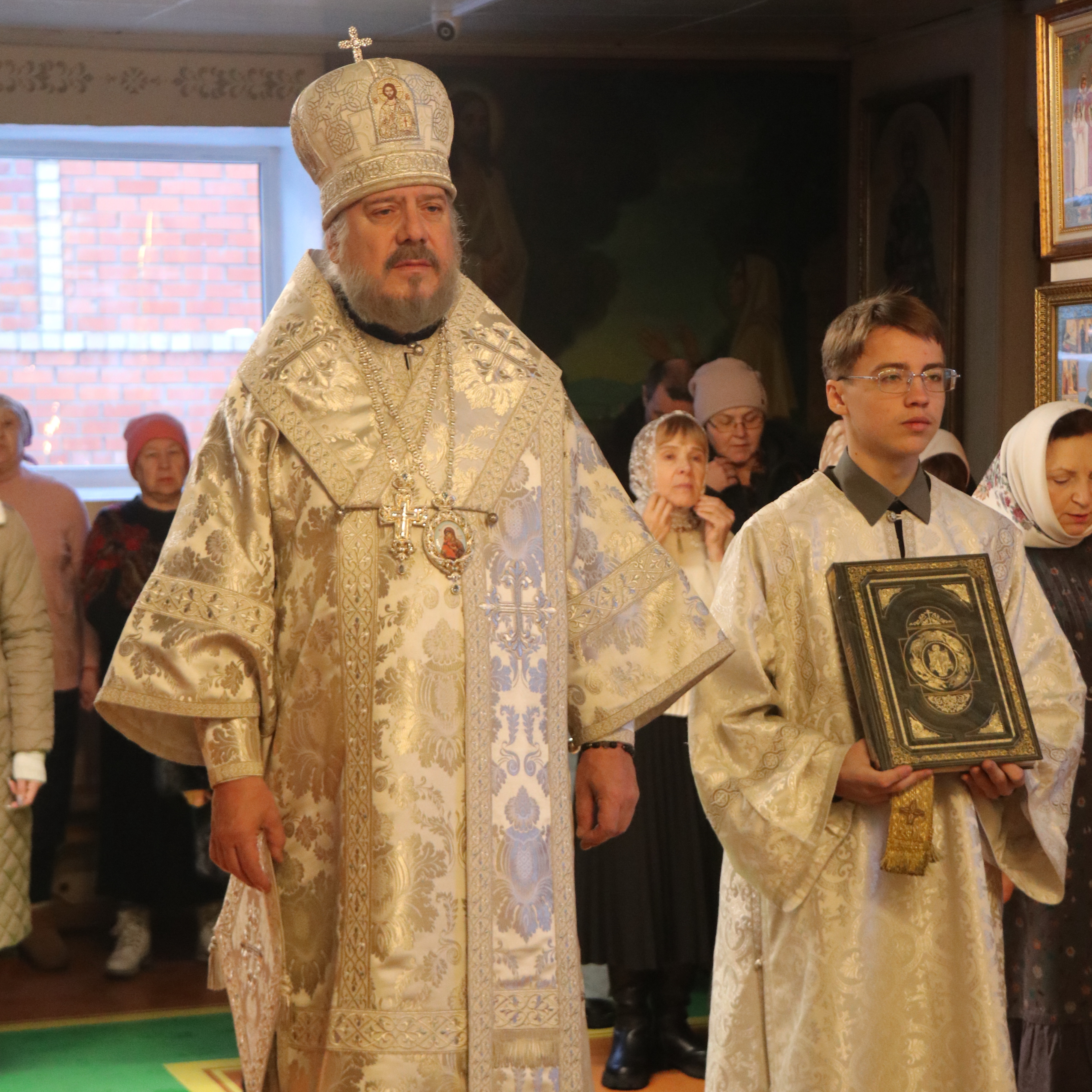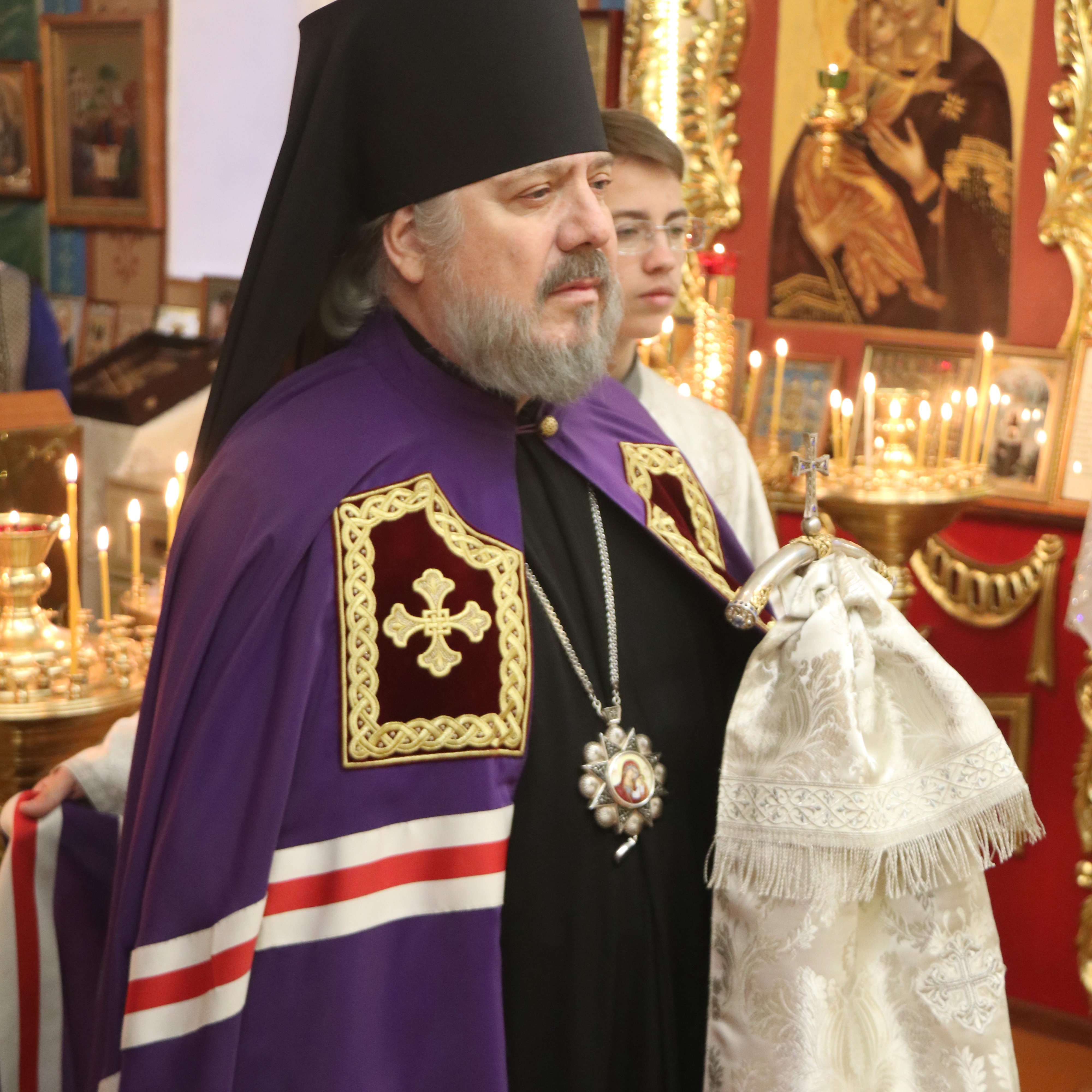 Его Преосвященству сослужили; иерей Андрей Калнин, благочиный Казанскгого Кафедрального собора и иерей Иоанн Капитанюк, настоятель Свято-Рождественского храма г. Находки.