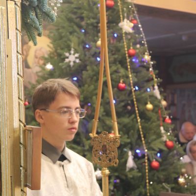 По заамвонной молитве епископ Николай, в сослужении духовенства Кафедрального собора, возглавил праздничное славление Рождеству Христову и обратился к прихожанам с архиерейским словом, в котором отметил жизненный подвиг празднуемых святых и поздравил всех присутствующих с Рождественскими святками.
