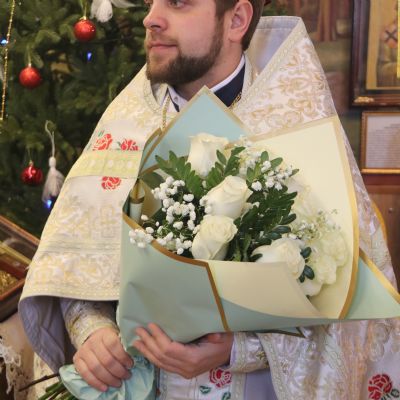 В ответном слове иерей Иоанн Капитанюк поблагодарил епископа Николая за архипастырский визит и преподнес Владыке букет цветов.