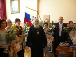 Во внимание к педагогическим трудам и активному участию в проведении Приморских образовательных чтений награждены архиерейскими грамотами А. В. Здор, зам. зав. кафедры теологии и религиоведения, Т. А. Гвоздарева, заведующая лабораторией православной культуры, Н. Г. Мизь, краевед, Р. Д. Гнеушева и Л. М. Свиридова – преподаватели филологического факультета ДВГУ. Вручил награды архиепископ Владивостокский и Приморский Вениамин, после чего выразил всем слова благодарности за их труды во благо православной церкви.