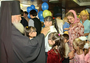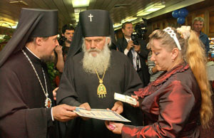Список этой иконы присутствует сейчас здесь на теплоходе. Русская Православная Церковь на протяжении всех веков своего существования уделяла особое внимание семье. Сегодня, когда президент Российской Федерации в своих ежегодных посланиях заостряет внимание на проблемах семьи и демографической ситуации, Святейший Патриарх Московский и всея Руси Алексий II и Священный Синод приняли решение утвердить Патриарший знак материнства, который состоит из двух степеней. И вот сегодня мы вместе с Приморским краевым фондом защиты семьи, материнства и детства «Мама» чествуем на этом теплоходе многодетные семьи. Этим мы открываем хорошую традицию – уделять внимание и чествовать тех, за кем будущее. В нашем крае таких семей немало. Когда мы рассматривали вопрос о выборе, кого удостоить высокими наградами, то критерием стало не только количество детей, но и образ жизни семьи, принципы воспитания, поведение; сегодня награждаются семьи, являющие собой высокий пример благочестия, церковности и крепких семейных устоев. Поздравляю всех с этим праздником!»