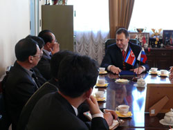 Первая встреча делегации состоялась с руководителем аппарата Администрации Приморского края Олегом Мельниковым, затем - с председателем Законодательного собрания Приморского края Виктором Горчаковым.