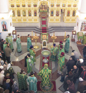 После литургии состоялся водосвятный молебен и крестный ход вокруг Покровского собора.