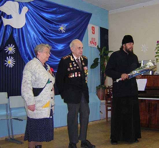 Открылся праздник молебном, отслуженным в храме святых равноапостольных Кирилла и Мефодия. После этого в актовом зале прошла литературно – музыкальная композиция. На ней учащиеся гимназии рассказали стихи, исполнили песни и сыграли сценки на военную тематику. На праздник были приглашены два ветерана войны, это Антонина Николаевна, которая прошла блокадный Ленинград и военный медик Лазинский Юлий Исаакович. Директор гимназии прот. Игорь Талько вручил ветеранам подарки. Юлий Исаакович рассказал присутствующим о своей 141-й Киевской дивизии.