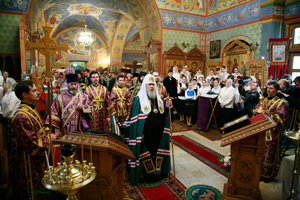 После Великого освящения Святейший Патриарх возглавил служение первой Божественной литургии в новоосвященном храме.