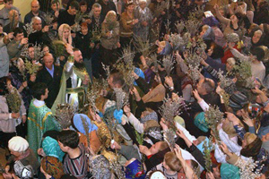По случаю праздника, который в России называется еще Вербным воскресеньем, все храмы были заполнены прихожанами, пришедшими приветствовать букетами вербочек Христа, идущего на вольные страдания.