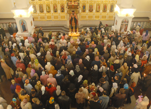 Во время молебна молящиеся зажгли свечи в память о тех нерожденных младенцах, которые ежедневно погибают от абортов в нашей стране, и вознесли покаянные молитвы ко Господу и Пресвятой Богородице. Затем был совершен крестный ход вокруг Покровского собора, а отец
