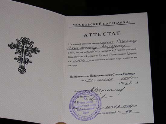 Торжественный акт состоялся в епархиальном управлении. Здесь в домовом храме во имя преподобного Сергия Радонежского состоялся благодарственный молебен о завершении обучения, а затем – прошло вручение документов об окончании училища.