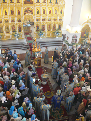 13 октября, в канун праздника, архиепископ Вениамин совершил в Покровском соборе Всенощное бдение.