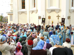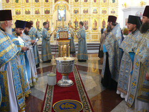 По окончании литургии в соборе состоялся водосвятный молебен, после чего духовенство и миряне совершили крестный ход вокруг Покровского храма.