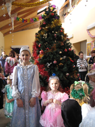После спектакля были традиционные игры, хороводы, стихи, песни вокруг елки, веселое чаепитие и подарки из рук Деда Мороза.