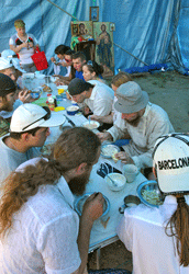 Первые два дня проведения съезда были полностью посвящены оборудованию лагеря, установке полевой трапезной и походного храма, отдыху и купанию в море. Однако уже сегодня началась работа секций по шести различным направлениям. Например, патриотическому, информационному, миссионерскому и другим.