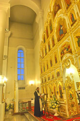 На богослужение собралось большое количество прихожан. По завершении полиелея ко всем собравшимся в храме с праздничным поздравительным словом обратился архиепископ Вениамин.
