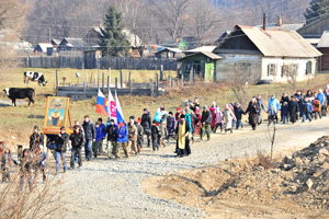 п. Тигровый. 4 ноября учащиеся Православной гимназии г. Владивостока, молодежь из общественной организации «Братство православных следопытов», а также духовенство и прихожане городских храмов прошли крестным ходом по п. Тигровому до строящегося храма св. Димитрия Солунского на территории летнего лагерного комплекса.