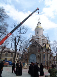 Затем состоялась церемония поднятия святынь на купол и притвор часовни.
