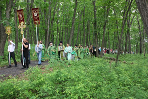 По окончании богослужения состоялся крестный ход. Духовенство и прихожане с храмовой иконой и молитвенными песнопениями прошли от храма к святому источнику, у которого был совершен водосвятный молебен.