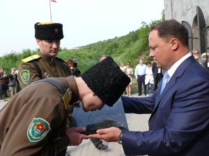 После архиепископ Вениамин совершил краткую молитву и освящение иконы, которую сразу же установили над главным входом представители казачества.