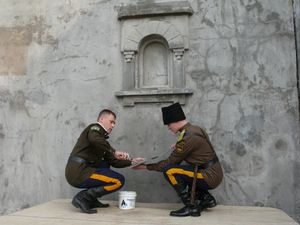 В 10.00 на форте № 7 прошла торжественная установка на фасад казармы иконы цесаревича Алексея, именем которого назван оборонительный форт.