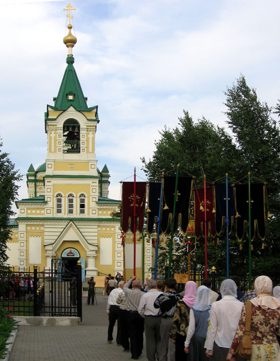 По окончанию торжественной встречи участники принесения мощей, жители и гости города крестным ходом прошли к (300 метров), у которого состоялся водосвятный молебен с чтением акафиста святому великомученику. Архиепископ Вениамин в сослужении архимандрита Иннокентия (Третьякова), архимандрита Сергия (Чашина), многочисленного духовенства прославили святого Георгия Победоносца. Больше тысячи богомольцев вознесли свои молитвы ко Господу. Затем в храме состоялась ночная Божественная литургия.