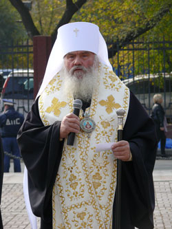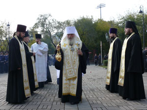 На прошедшем митинге также присутствовал митрополит Владивостокский и Приморский Вениамин. Владыка обратился ко всем присутствующим с короткой проповедью, а затем совершил заупокойную литию о всех погибших полицейских.
