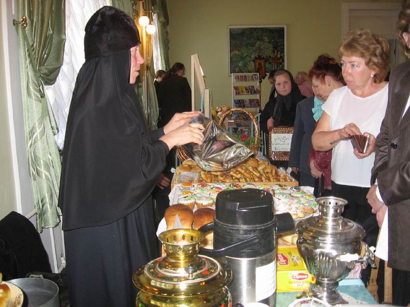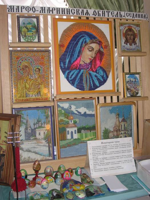 Сестры Марфо-Мариинской женской обители милосердия удивили посетителей вышитыми иконами, рукодельными четками, поясами, кропилами. Особое внимание зрителей было отдано рисункам на камне, среди которых отметили образ Серафима Саровского. Умиление вызвали крошечные распашонки и платьица – крестильная одежда для младенцев. А по-домашнему вкусные пирожки, куличи, жаворонки, торты с «фирменным» монастырским ароматным чаем покорили буквально всех. На вопрос, что же в этом чае, монахини ответили: «Душица, еловые шишки, мята, шиповник…». А самый главный компонент – любовь. И это все, отведавшие монастырского угощения, почувствовали.
