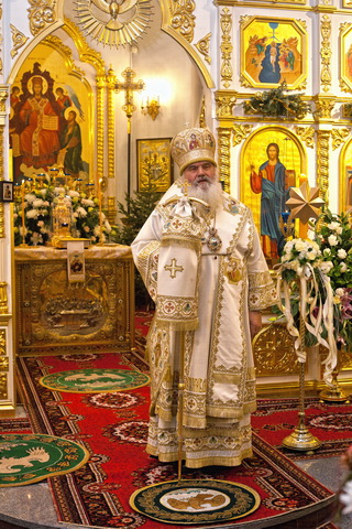 По окончании богослужения Высокопреосвященнейший владыка Вениамин обратился к пастве с архиерейским словом, в котором поздравил всех молящихся со светлым праздником Рождества Христова.