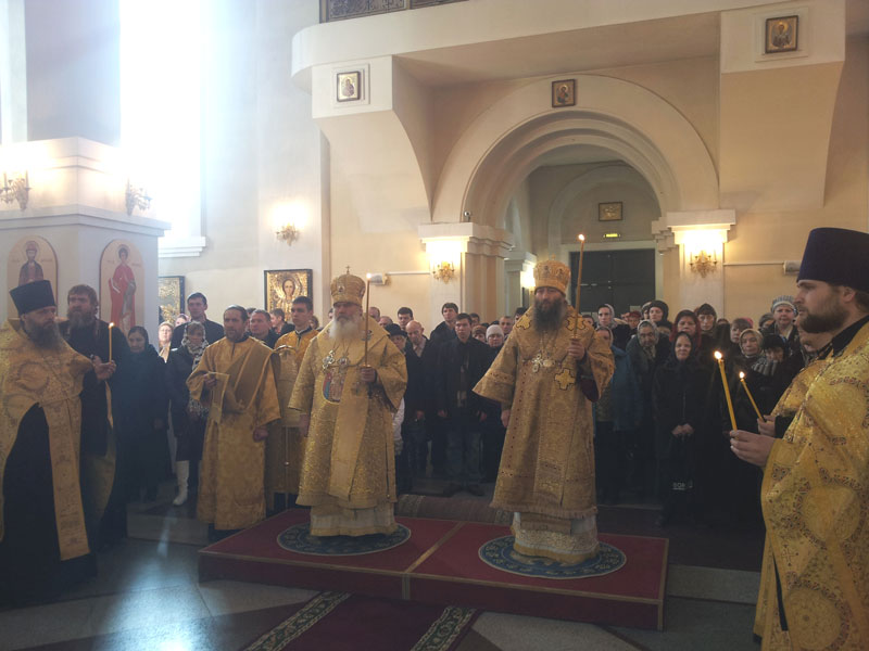 Владивосток. 3 марта 2012 года, накануне праздника Торжества Православия, митрополит Владивостокский и Приморский Вениамин возглавил Соборное Всенощное бдение в Покровском кафедральном соборе.