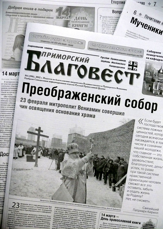 Владивосток. По благословению митрополита Владивостокского и Приморского Вениамина, в 2012 году епархиальное издание «Приморский Благовест» выходит в свет в обновленном дизайне.