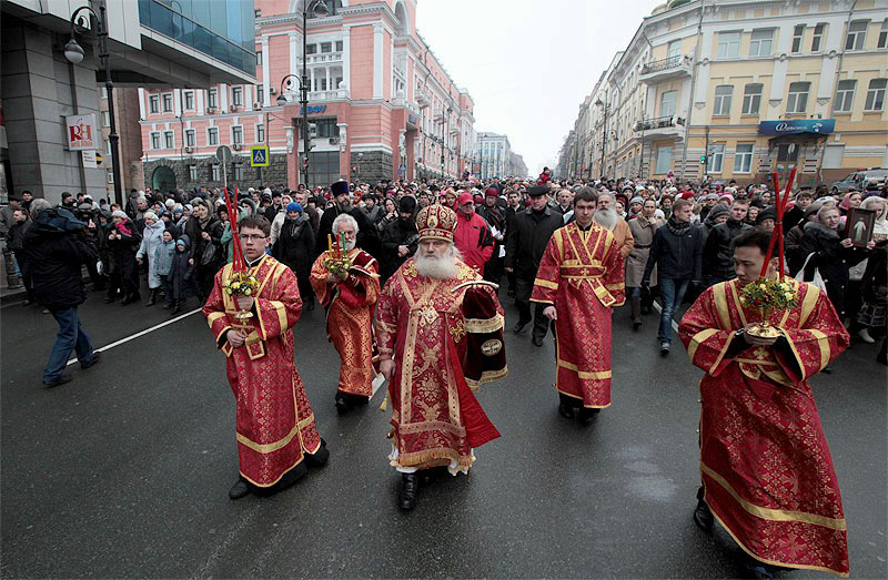Владивосток. 15 апреля 2012 года, в праздник Светлого Христова Воскресения, митрополит Владивостокский и Приморский Вениамин возглавил Пасхальный Крестный ход.