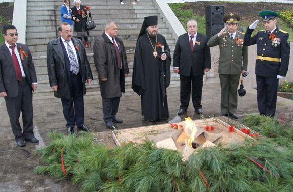 Его Преосвященство возложил цветы к Вечному огню и благословил клирикам Казанского кафедрального собора совершить у мемориала литию о упокоении всех погибших в годы Великой Отечественной войны.