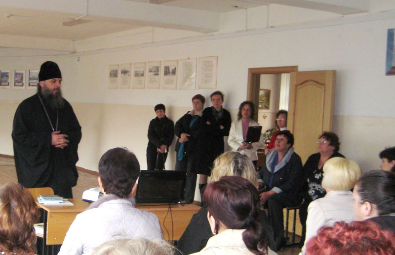В школе № 59 духовенство и православные волонтеры, чтобы обсудить эти вопросы, встретились уже с родителями. Участниками такого родительского собрания стали также: представитель уполномоченного по правам ребёнка в Приморском крае Татьяна Алексеевна Носова; и председатель Родительского движения Дальневосточного региона Галина Георгиевна Курносёнок.