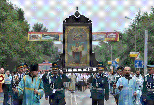 По совершении молебна, состоялось торжественное прохождение военнослужащих перед святым образом Божией Матери.