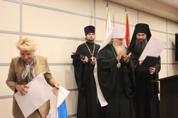 Владивостокскую епархию Приморской митрополии на торжественной встрече, состоявшейся в администрации края, представляли: викарий епархии епископ Уссурийский Иннокентий; благочинный Владивостокского округа епархии иерей Димитрий Федорин.